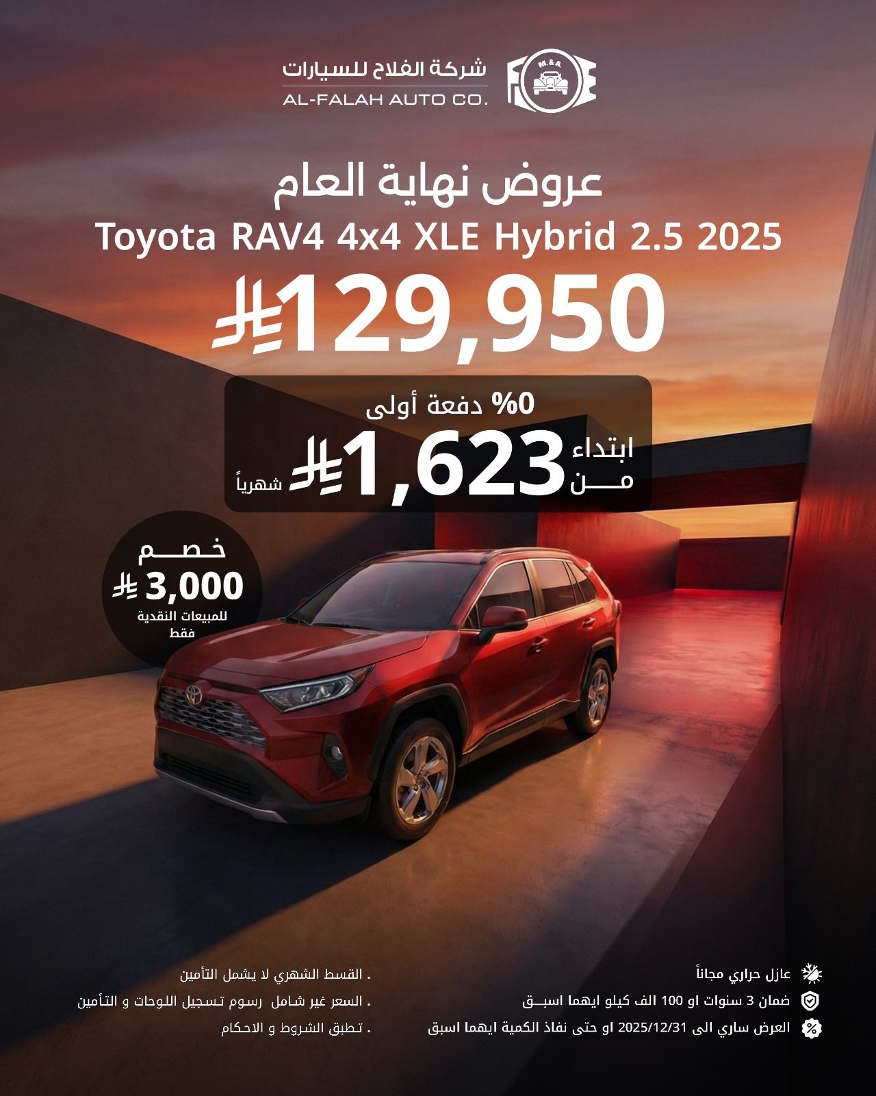 نواصل معكم احدث عروض السيارات من خلال عروض الفلاح للسيارات و تقدم اليوم موديلات متنوعة بمناسبة نهاية عام 2025 مع مميزات متنوعة منها بدون دفعة اولي مع توفير عازل حراري مع ضمان متغير لبعض الموديلات من 3-5 سنين و غيرها من المميزات و باقل الاسعار المناسبة للجميع للكاش او التقسيط فقط تابعونا .
