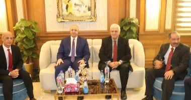 الإثنين، 15 ديسمبر 2025 11:53 صاستقبل الدكتور محمد هاني غنيم محافظ بني سويف، الدكتور محمد أيمن عاشور وزير التعليم العالي والبحث العلمي، في مستهل زيارته لمحافظة بني سويف، بمقر مجمع المعاهد العليا بالمنطقة الصناعية ببياض العرب شرق النيل .