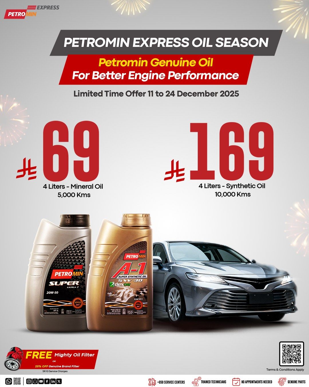 بنقدم ليكم اليوم احدث عروض بترومين اكسبرس علي تغير الزيوت و باقل الاسعار لفترة محدودة و يستمر العرض حتي الاربعاء 24 ديسمبر 2025 انتهز الفرصة و ابدا الان في موسم تغير زيت المحرك و باقل الاسعار ايضا فقط تابعونا علي موقعكم عروض توداي ليصل اليكم كل جديد عن عروض السيارات في السعودية