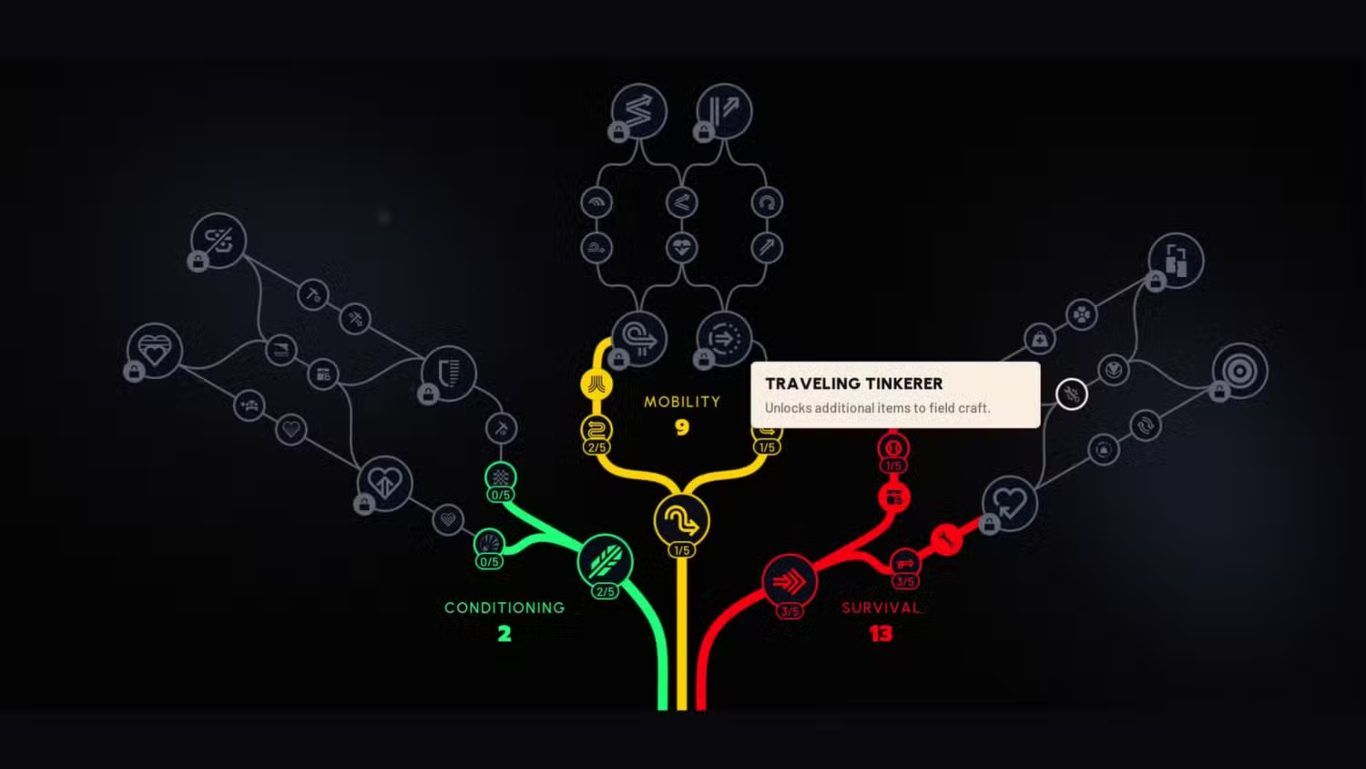 يتم فتح Traveling Tinkerer عند الوصول إلى العقدة الثانية الكبيرة في شجرة Survival وهي خطوة تتطلب استثمار خمسة عشر نقطة مهارة مما يجعلها هدفًا متوسط المدى للاعبين الذين يعتمدون على الصناعة الميدانية كجزء أساسي من استراتيجيتهم إذ تضيف هذه المهارة سبع وصفات إضافية إلى قائمة الصناعة مما يحول النظام من أداة بسيطة للبقاء إلى ميزة قوية توفر حلولًا تكتيكية متنوعة داخل الجولة.