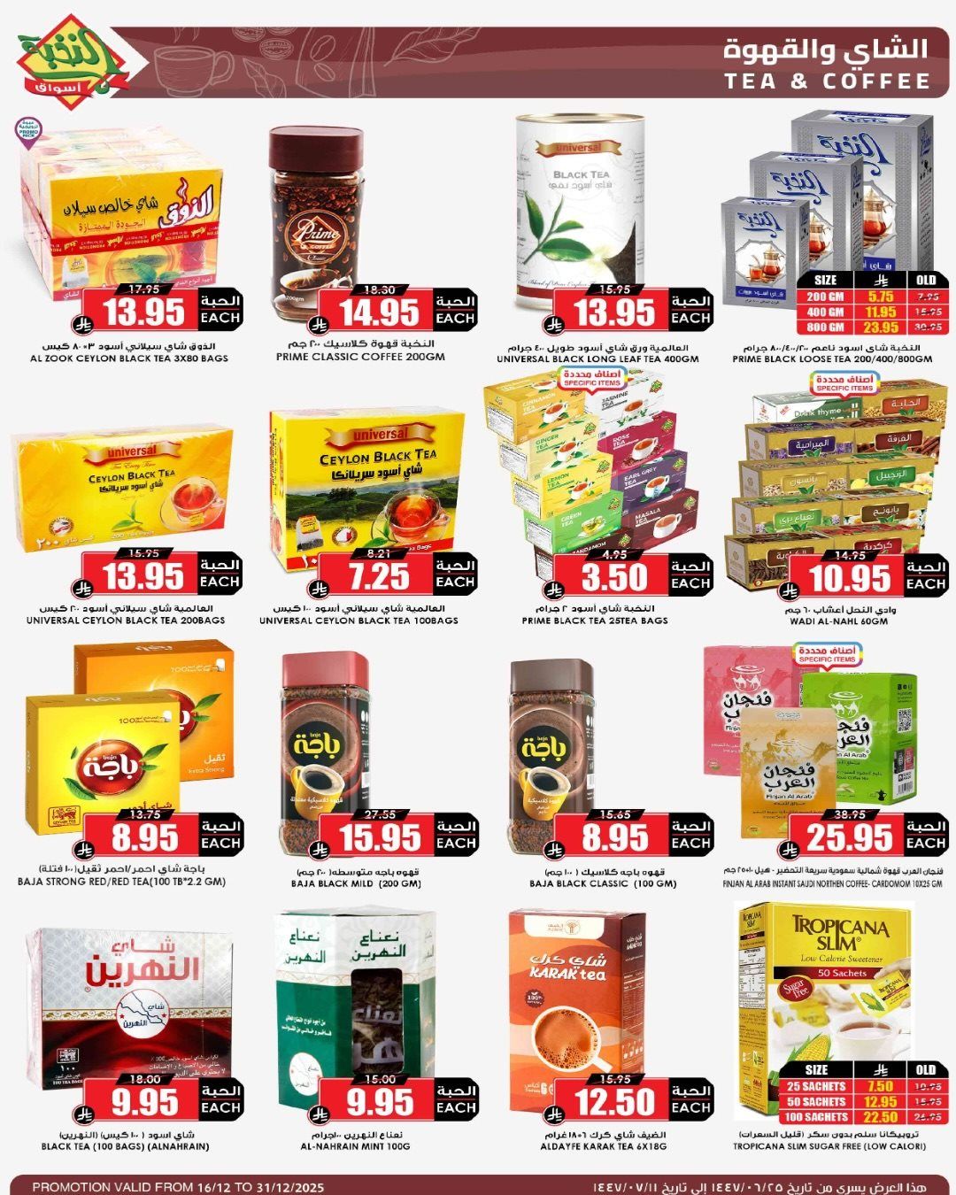 عروض اسواق النخبة اليوم الثلاثاء 16 ديسمبر 2052 و بتحتوي علي تشكيلة من المنتجات الغذائية الأساسية مثل معجون الطماطم والكاتشب والصلصات الحارة والمايونيز والخل والزيوت إضافة إلى الأجبان القابلة للدهن والأجبان المثلثة والأرز وحليب البودر والمشروبات الساخنة من أنواع الشاي والقهوة واللاتيه وغيرها من المنتجات باقل الاسعار