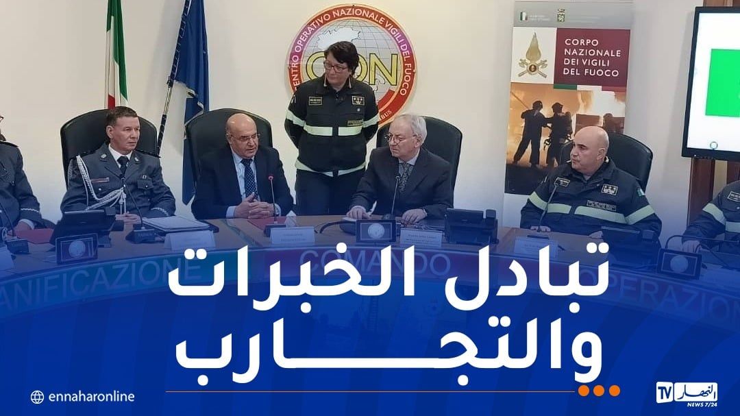 قام المدير العام للحماية المدنية بزيارة عمل إلى جمهورية إيطاليا، و ذلك بدعوة من نظيره الإيطالي، وهذا تنفيذا لتوجيهات وزير الداخلية والجماعات المحلية و النقل، السعيد سعيود، الرامية إلى تدعيم القدرات البشرية و التقنية و تطوير آليات التنسيق والتعاون في مجالات الوقاية من الأخطار الكبرى.