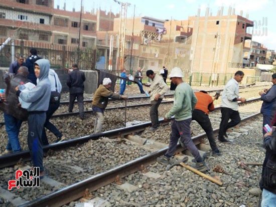 توزيع مياه وعصائر على العمال أثناء صيانة خط السكة الحديد بطوخ (3)