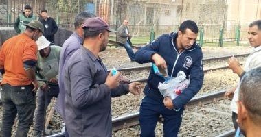 توزيع مياه وعصائر على العمال أثناء صيانة خط السكة الحديد بطوخ (1)