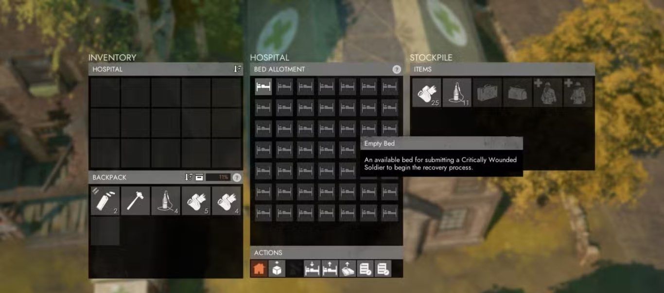 إذا لم يكن اللاعبون قريبين من مستشفى مناسب، يمكنهم إنشاء مستشفى ميداني خاص بهم، وهو لا يحتوي على عدد كبير من الأسرّة، لكنه يظل مفيدًا.