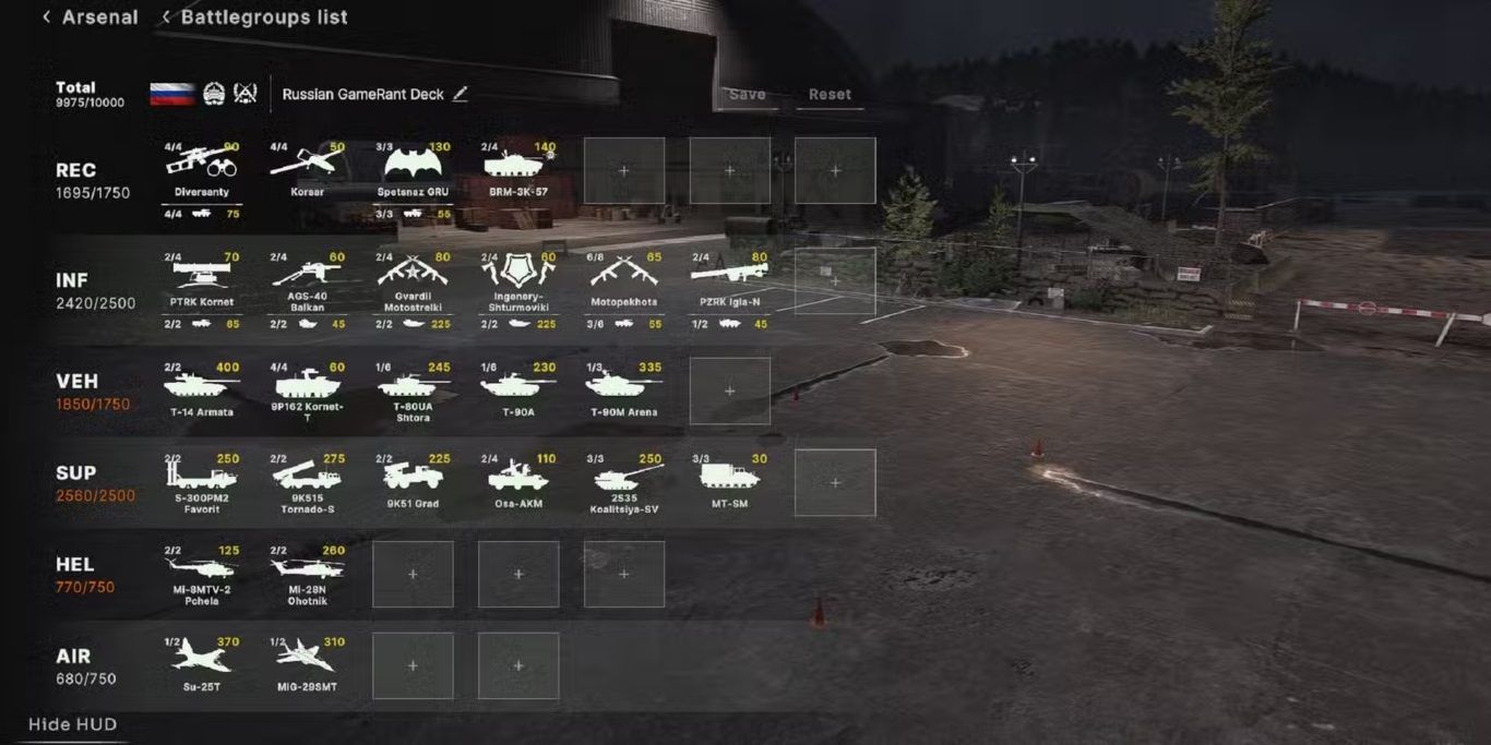 تُعد روسيا والولايات المتحدة طرفين رئيسيين في الصراع داخل اللعبة، وغالبًا ما تُعتبر القوات الروسية قوية على الأرض، خاصة عندما يتعلق الأمر بالدبابات ووحدات الهاون. مع ذلك، لا يمكن الفوز بحرب اعتمادًا على عدد محدود من الوحدات. تحتاج التشكيلة الجيدة إلى دعم اللاعب في جميع جوانب المعركة، ومنحه الأدوات المناسبة لاعتراض هجمات العدو وقلب موازين الحرب لصالحه.