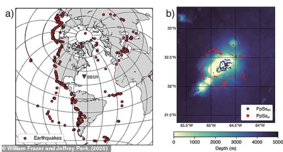 كيف توصل العلماء إلى الاكتشاف؟وفى دراسة نشرت بدورية Geophysical Research Letters، اعتمد الباحثون على تحليل بيانات زلزالية مسجلة من محطة رصد في برمودا، حيث تتبعوا مسارات زلازل قوية وقعت على بُعد يصل إلى 50 كيلومترا أسفل الجزيرة، ومن خلال تغير مسارات الموجات الزلزالية بشكل غير متوقع، تم رصد هذه الطبقة الصخرية السميكة.