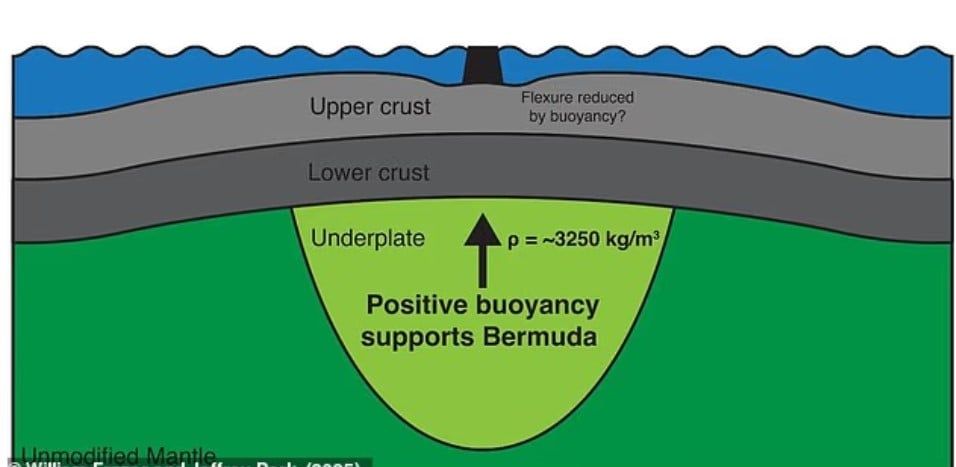 يرى العلماء أن هذه الطبقة المكتشفة أقل كثافة من الصخور المحيطة، ما يجعلها تدفع الجزيرة إلى أعلى وتمنع هبوطها بمرور الزمن، وهو ما قد يفسر سبب استمرار ارتفاع برمودا رغم غياب النشاط البركاني لملايين السنين.