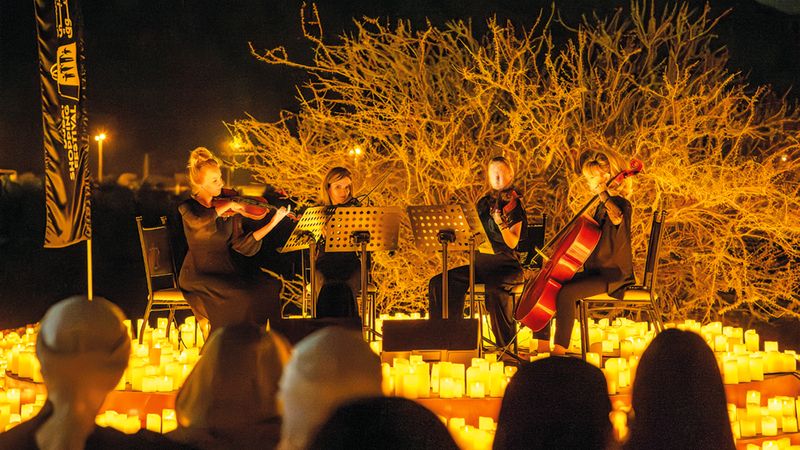 وتتضمن الفعالية كذلك حفلات موسيقية على ضوء الشموع، وهي سلسلة من عروض موسيقية على ضوء الشموع، تقام في الهواء الطلق بين الجبال، وتتضمن: 100 عام من الألحان العربية الشهيرة (19 الجاري)، ورحلة البيانو عبر العصور (27 الجاري).