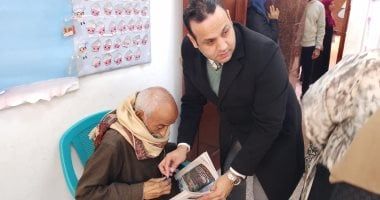 وأحضر رئيس اللجنة، كرسي ليستريح الناخب، قبل أن يحضر له ورقة الاقتراع للإدلاء بصوته في الانتخابات.