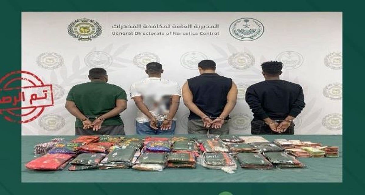 ألقت المديرية العامة لمكافحة المخدرات القبض على مخالف لنظام أمن الحدود ومقيمين من الجنسية الإثيوبية، ومقيم من الجنسية الإرترية بمنطقة الرياض لترويجهم مادة الإمفيتامين المخدر 62 كيلوجراما من مادة الحشيش المخدر وأقراضا خاضعة لتنظيم التداول الطبي. وتم إيقاف المخالفين، واتخاذ الإجراءات النظامية بحقهم، وإحالتهم إلى النيابة العامة.