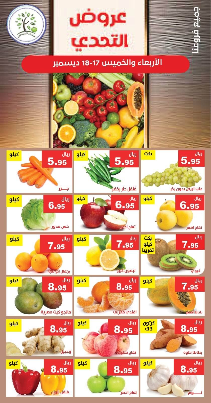 بنقدم ليكم اليوم احدث عروض مؤسسة حصاد البساتين الطازج بتاريخ الاربعاء 17 ديسمبر 2025 و تحتوي علي تشكيلة من الخضروات الطازجة من الكرنب و الكوسا و الطماطم و الخيار و غيرها من الخضروات الورقية و بتوفر كمان تشكيلة من الفواكه الموسمية و المحيلية في عرض حصري متاح لمدة يومان فقط بارخص الاسعار فقط ابقوا معنا