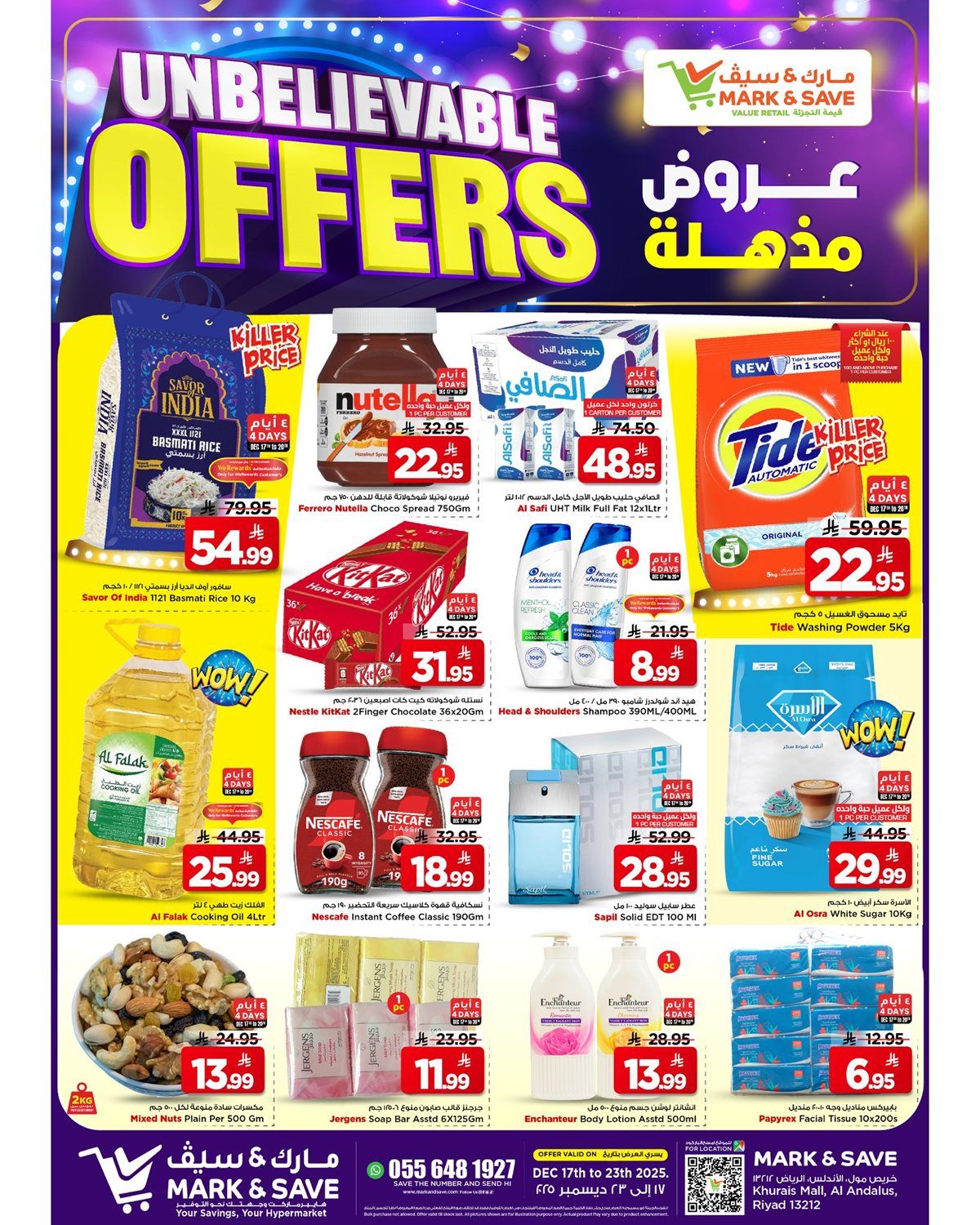 عروض مارك اند سيف الرياض الأربعاء 26-12-1447هـ تبدأ بتشكيلة رائعة من المنتجات الغذائية تشمل البروكلي والخرشوف والجزر والعنب والكمثرى والمربيات الطبيعية والعسل بجانب الي الاجهزة الكهربائية المختلفة مثل محضر خضار كهربائي ومقلاة وصانعة كريب وميزان مطبخ وسخان شوربة في عروض مذهلة و باقل الاسعار