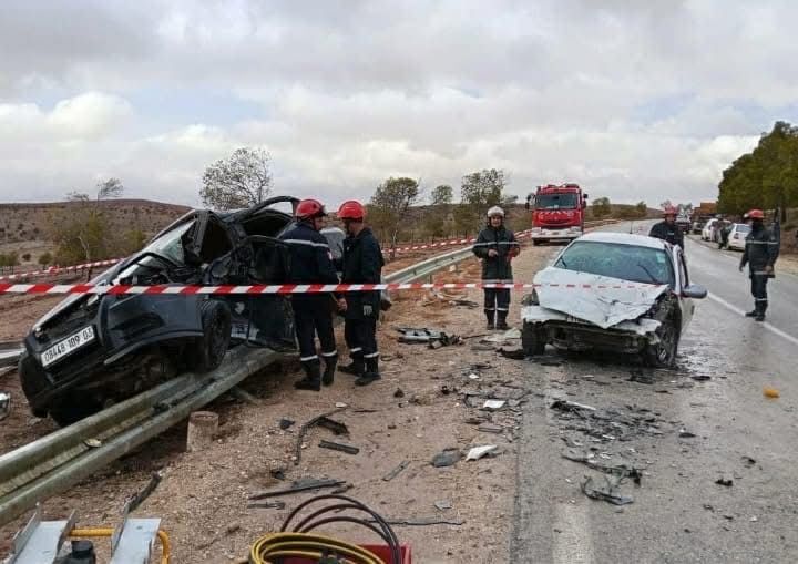 الحادث تمثل في اصطدام بين سيارتين سياحيتين، بالطريق الوطني رقم 23 في النقطة الكيلومترية 286، بمنطقة الخنق ببلدية ودائرة أفلو.