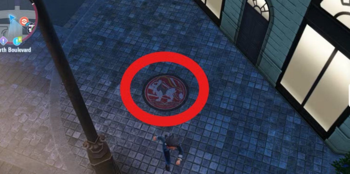 Pokemon الموجود على غطاء فتحة المرافق في Rouge District في Pokemon Legends Z A Mega Dimension