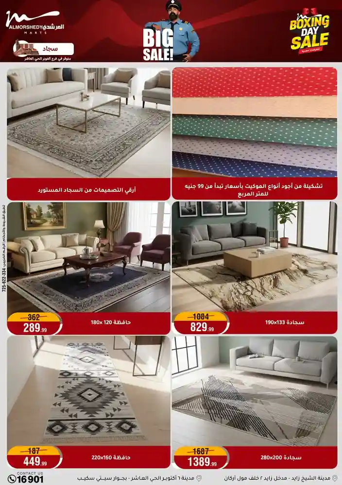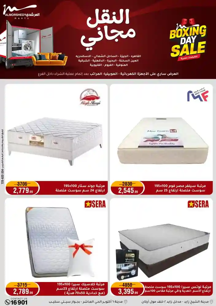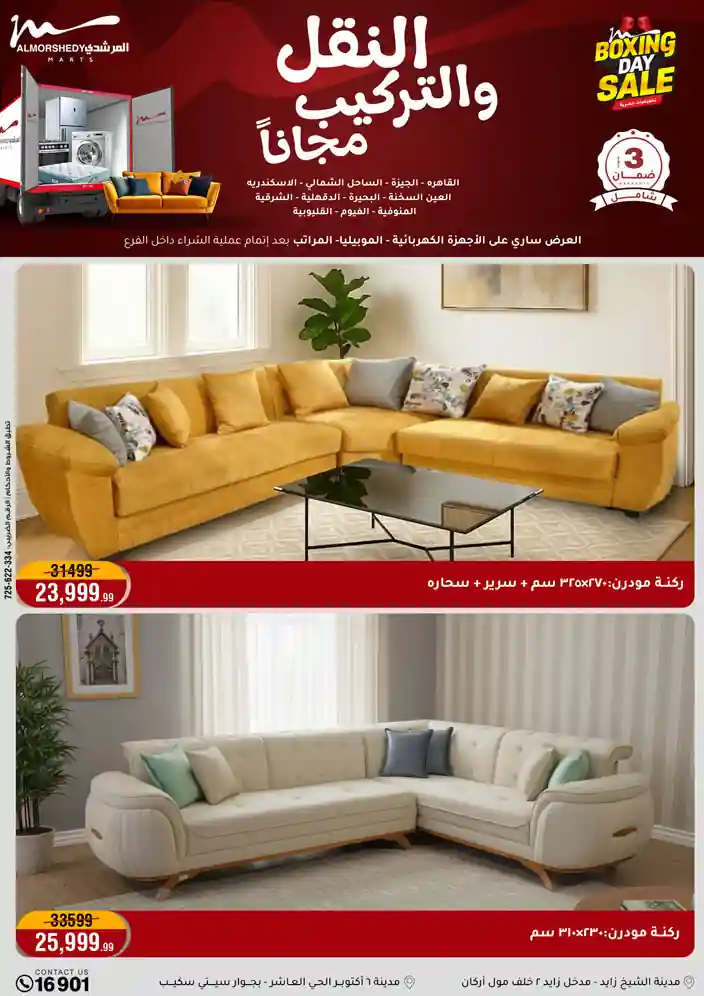 عروض جديدة من أسواق المرشدي مع اكبر مهرجان للتخفيضات في مصر خصومات حتى 70% وقسط براحتك بدون فوائد بأسعار العروض المخفضة على 12 شهر لحاملي بطاقة ائتمان CIB أو قسط براحتك مع VALU بدون مقدم حتى 60 شهر أو بدون مقدم وبدون فوائد مع نظام هاتريك وكمان النقل مجاني للقاهرة والجيزة والقليوبية على قسم الأجهزة الكهربائية والموبيليا والمراتب ( تطبق شروط المكان ) خصومات على جميع الأقسام أدوات منزلية – اجهزة كهربائية – مفروشات – موبيليا – نجف – سجاد – مراتب – ملابس رجالي وحريمي وأطفالي ومستلزمات ولعب الأطفال وجاليري وأقسام تانية كتير استمتع بالتسوق في أسواق المرشدي مع أكتر من 12 قسم و أكثر من 10,000 منتج يعني كل اللي بتحلم بيه عند المرشدي هتلاقيه