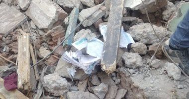مشاهد أليمة من حطام المنزل المنهار بحى غرب مدينة المنيا، حيث يحتضن الركام كراسات المدرسة والأجهزة المنزلية، والبعض يبحث عن أشيائه المفقودة أسفل الركام، ذلك المشهد الأليم شهدته مدينة المنيا فى الساعات الأولى من ليلة أمس، ويستمر حتى اليوم، مع مواصلة البحث عن أحد المفقودين أسفل المنزل.