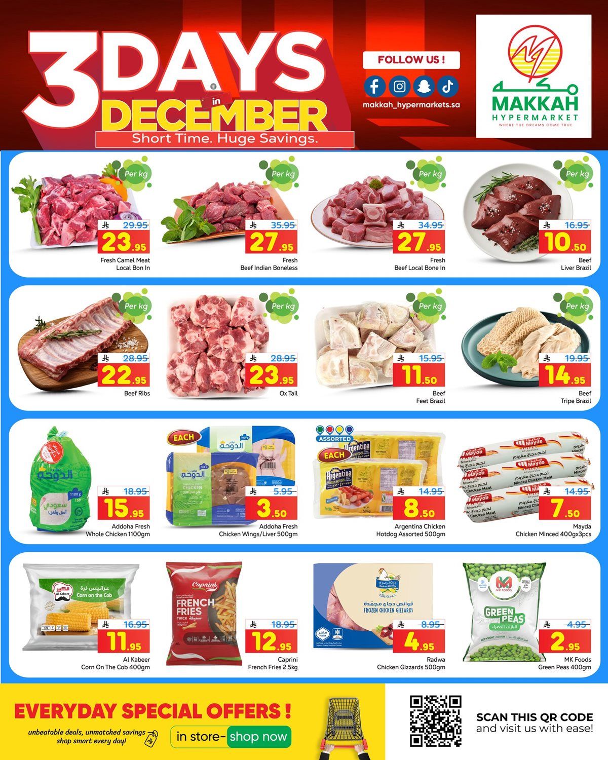 عروض مكة هايبر ماركت الويكند الخميس 18-12-2025 و تحتوي علي أنواعا متنوعة من اللحوم الحمراء والبيضاء وقطع الدجاج المختلفة إضافة إلى منتجات جاهزة مثل النقانق والبرجر والأجبان المجمدة و بتوفر كمان خضروات وفواكه موسمية وأسماك محلية وطازجة باسعار مناسبة للجميع فقط ابقوا معنا ليصلكم كل جديد