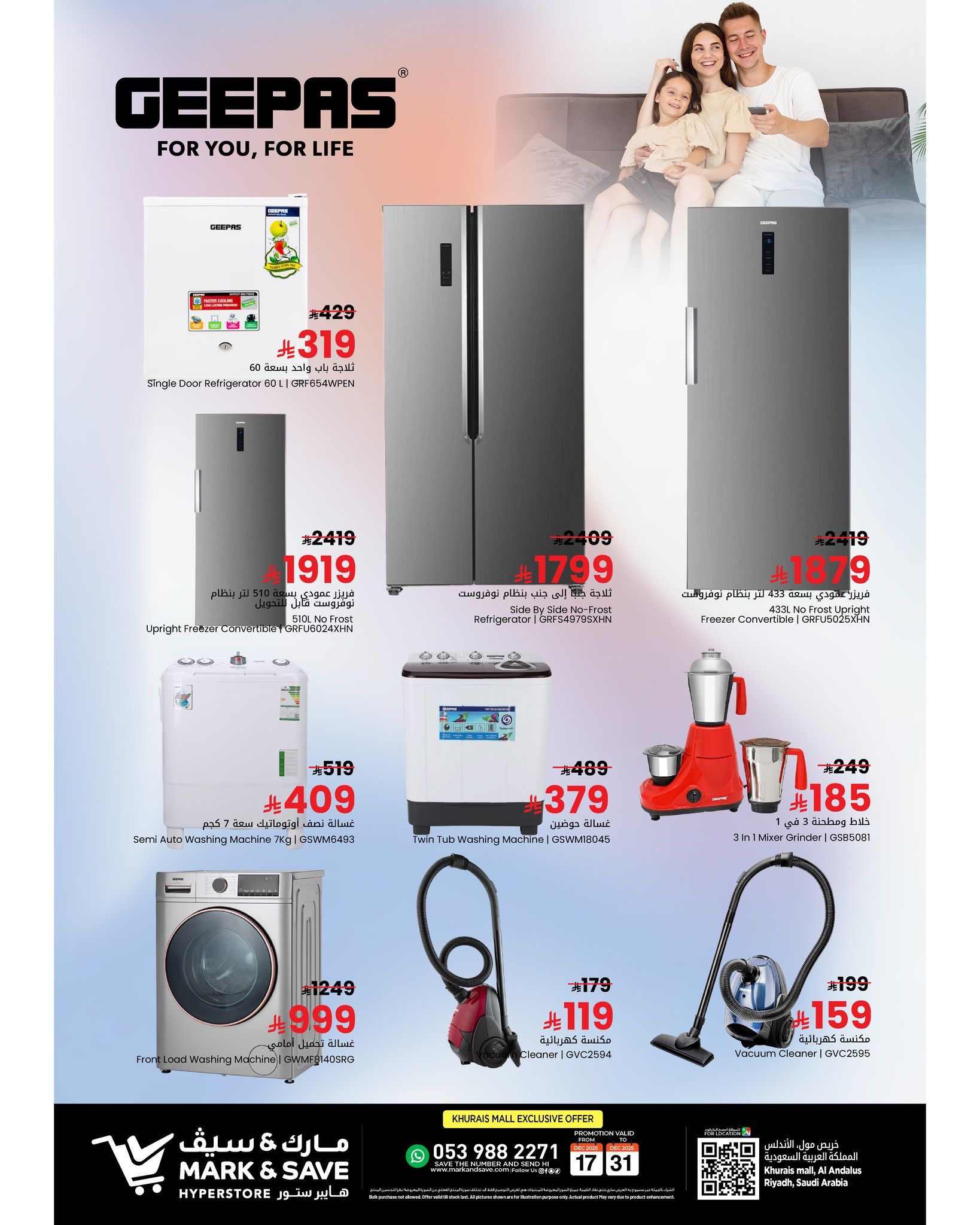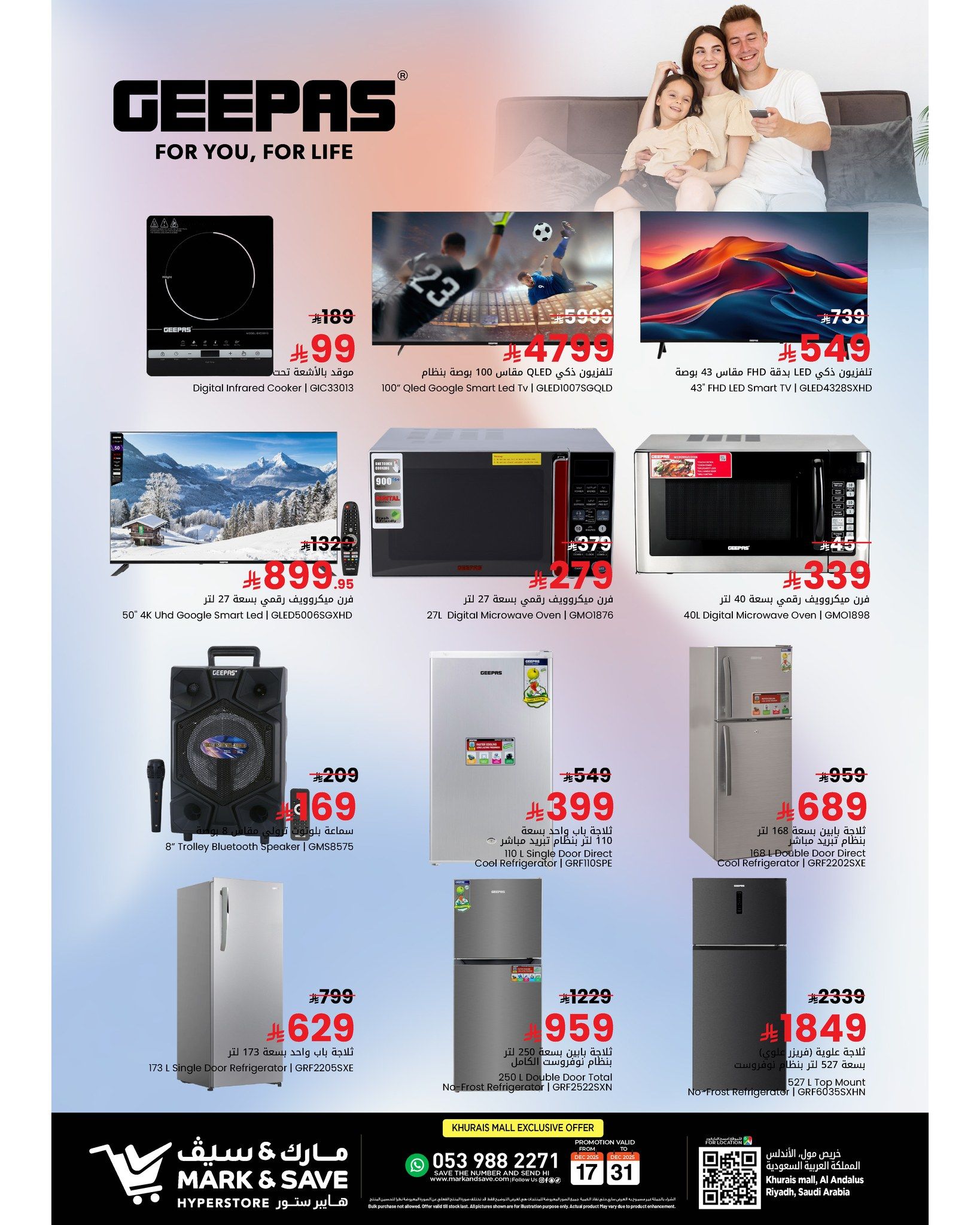 نستعرض معاكم احدث عروض مارك اند سيف الرياض الخميس 18 ديسمبر 2025 وتحتوي علي تشكيلة من الاجهزة الكهربائية من الغسالات و الثلاجات و وشاشات التلفزيون و بجانب ذلك بتوفر كمان افضل عروض الالكترونيات من السماعات الاسليكية و التكيفات و كشافات ضوء و غيرها من الاجهزة و باقل الاسعار المناسبة للجميع