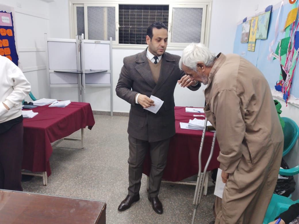واصطحب المستشار رئيس اللجنة الفرعية، الناخب إلى صندوق الاقتراع ليساعده على الإدلاء بصوته والمشاركة في أداء الواجب الوطني.