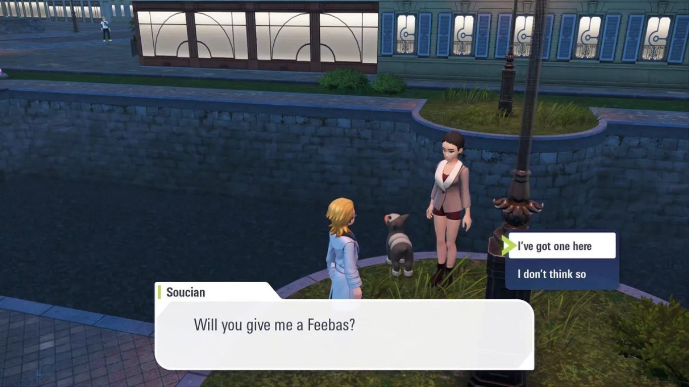 عند التحدث إلى Soucian توضح اهتمامها بـ Feebas وتطلب من اللاعب إحضار واحد لها. لا توجد أي شروط إضافية أو مهام فرعية مرتبطة بالطلب كما لا يوجد حد زمني لإكمال المهمة مما يمنح اللاعب الحرية الكاملة في البحث عن Feebas في الوقت المناسب له.