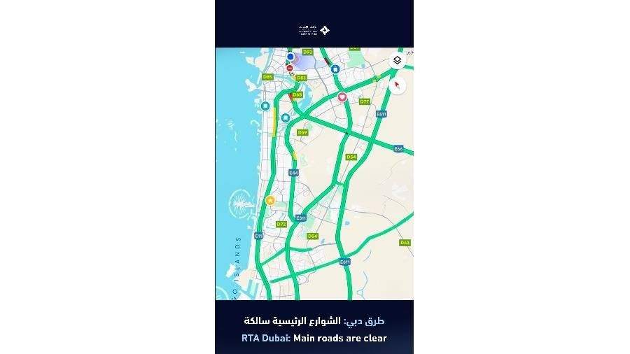 أعلنت هيئة الطرق والمواصلات في دبي، أن الطرق الرئيسية في الإمارة سالكة.