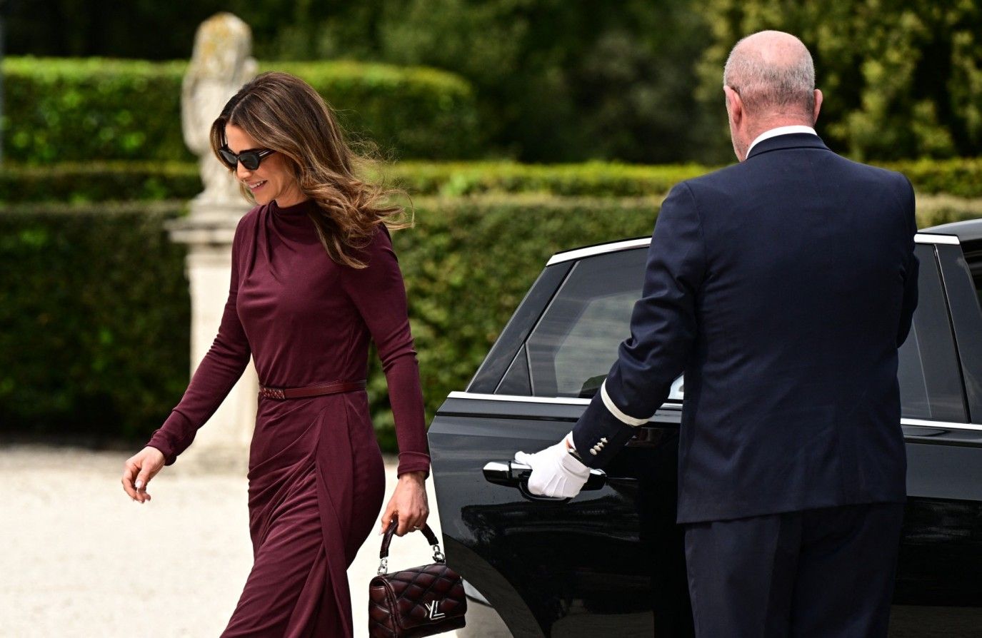 الملكة رانيا العبدالله تتألّق بالحرير البرغندي