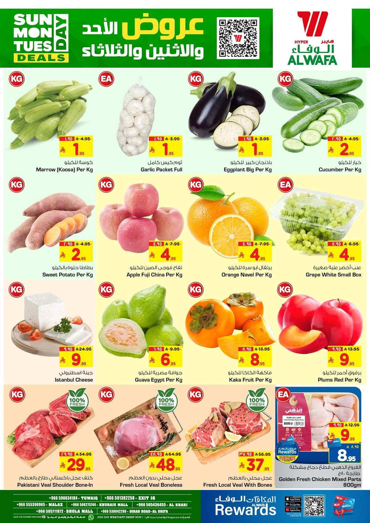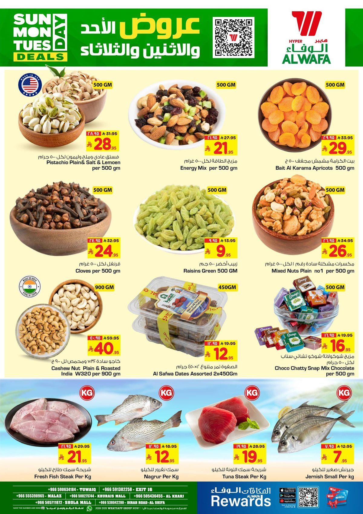عروض الوفاء هايبر ماركت الاحد 21-12-2025 تحتوي علي تشكيلة واسعة من المنتجات الغذائية الاساسية من الارز بانواعه وحبوب الشوفان والمعكرونة والمكسرات اضافة الى الدجاج المجمد واللحم البقري والاغنام الطازجة والخضروات المتنوعة مثل الكوسة والخيار والباذنجان والبطاطا ورقائق البسكويت المالحة والفشار و الشاي والكاتشب