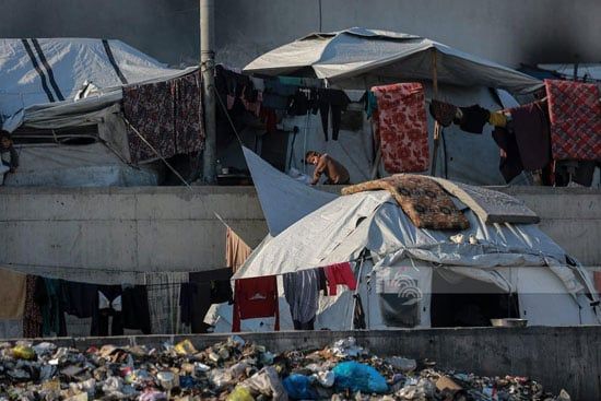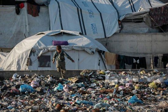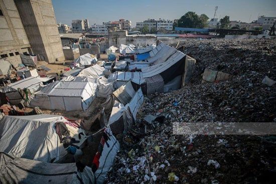 تكدس لخيام النازحين بالقرب من مكبٍّ للنفايات وسط مدينة غزة