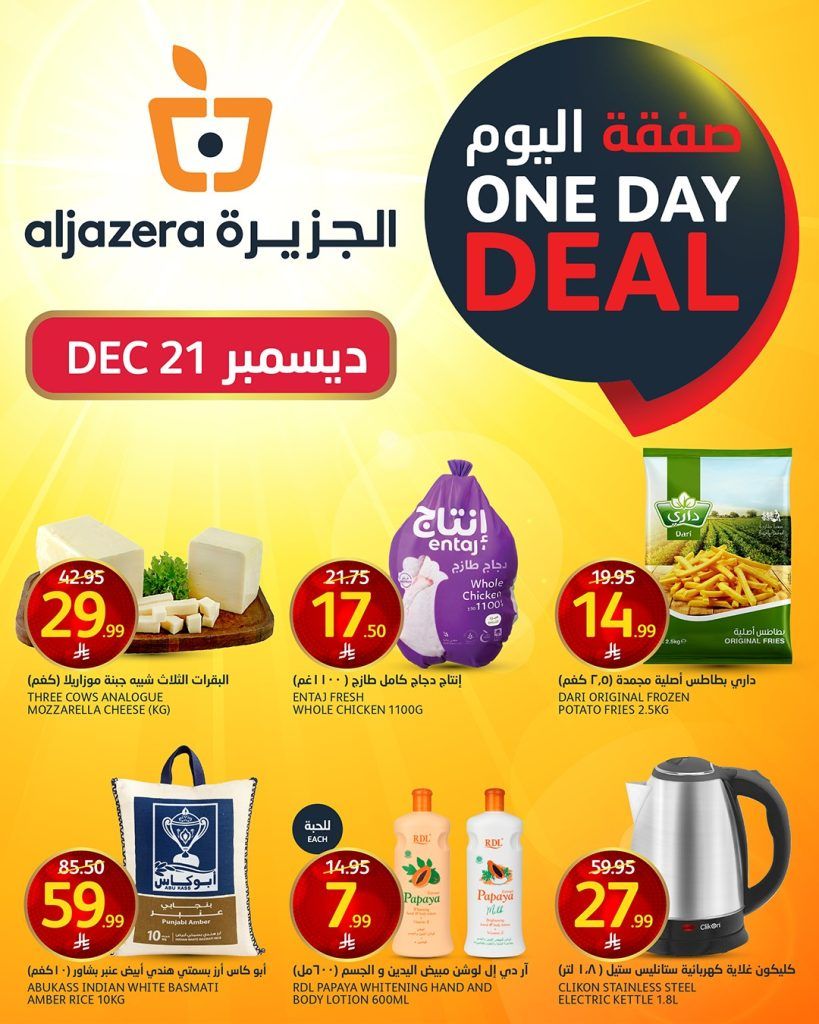 نقدم لكم احدث عروض اسواق الجزيرة بتاريخ الاحد 21 ديسمبر 2025 و تحتوي علي افضل المنتجات الغذائية المتنوعة منها داري بطاطس أصلية و انتاج دجاج كامل طازج بجانب ذلك بتوفر كمان البقرات الثلاث جبنة موزريلا و كليكون غلاية كهربائية و بارخص الاسعار المناسبة للجميع فقط تابعونا ليصلكم كل جديد عن عروض السعودية