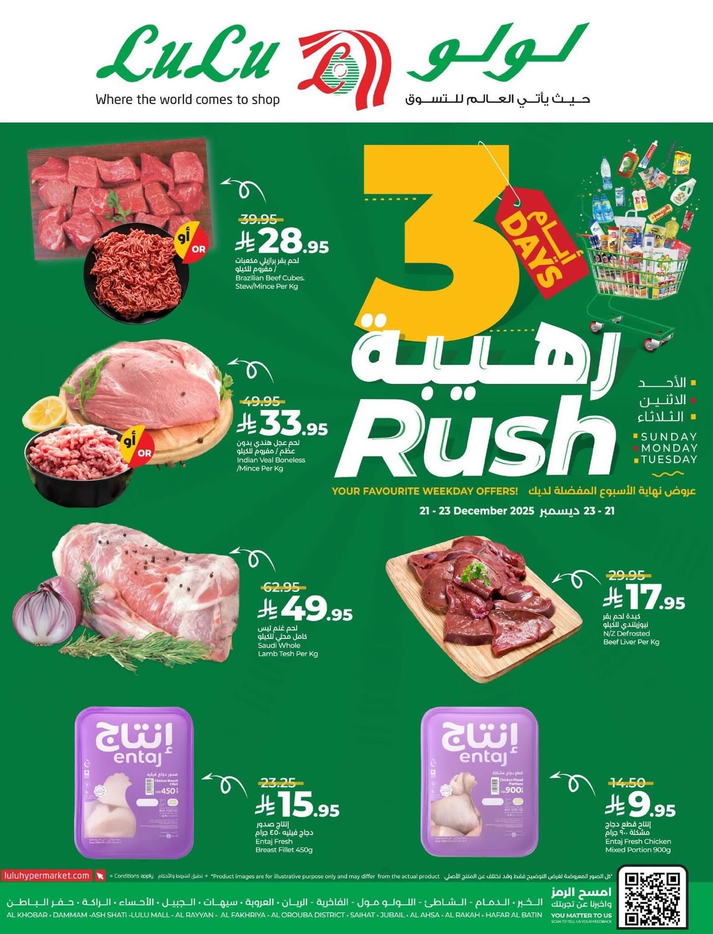 عروض لولو الدمام الطازج الاحد 21-12-2025 بتقدم ليكم اليوم اقوي العروض علي تشكيلة من المنتجات الغذائية و الاستهلاكية منها الخضروات و الفواكه الطازجة و بجانب ذلك بتوفر كمان مجموعة من الاسماك و اللحوم و غيرها من المنتجات و باسعار رائعة مستمرة لمدة 3 ايام فقط ابقوا معنا ليصلكم كل جديد