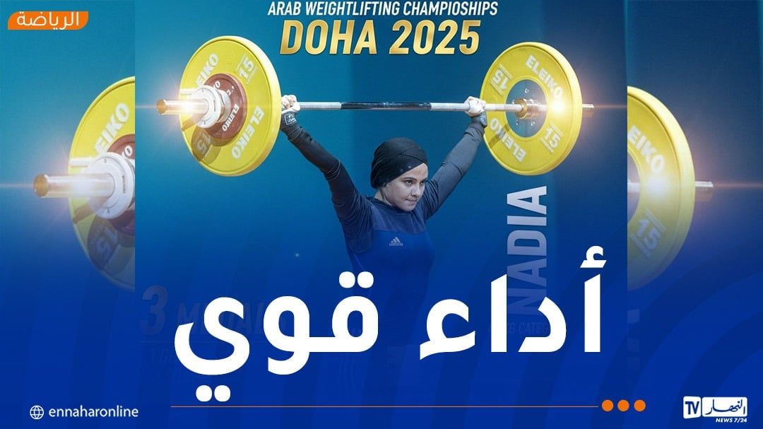 أهدت البطلة الصاعدة في رياضة رفع الأثقال، نادية كتابي، الجزائر 3 ميداليات في ثاني أيام البطولة العربية، الجارية وقائعها بالدوحة القطرية، في الفترة ما بين الـ 20 والـ 27 ديسمبر الجاري.