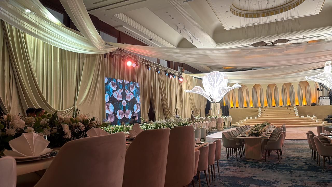 شهدت أحد القاعات بأحد الفنادق الكبرى فى القاهرة الإستعداد لإنطلاق حفل زفاف المغربى محمود بنتايج لاعب فريق الزمالك على سندس أحمد سليمان نجلة أحمد سليمان عضو مجلس إدارة القلعة البيضاء.