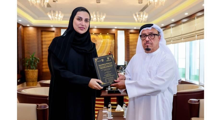 وتوجه بالشكر إلى الملازم أول روضة حمدان، خلال استقبالها في مكتبه، على هذا الإهداء القيم. مُشيداً بموضوع رسالتها وأهميته، ومتمنياً لها التوفيق.