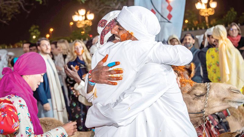 وحطّت القافلة رحالها في القرية التراثية بالقرية العالمية، التي تزيّنت بالورد، وفاحت بأريج البخور والزعفران، فيما صدحت الفرقة الحربية بالأهازيج، وسط حضور جماهيري جاء لاستقبال المشاركين.