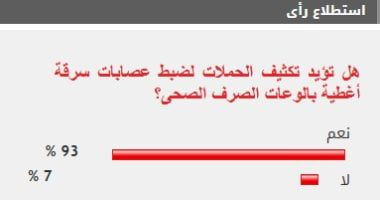 وأيد 93% من تكثيف الحملات لضبط عصابات سرقة أغطية بالوعات الصرف الصحى ، بينما رفض 7% موضوع الاستطلاع.