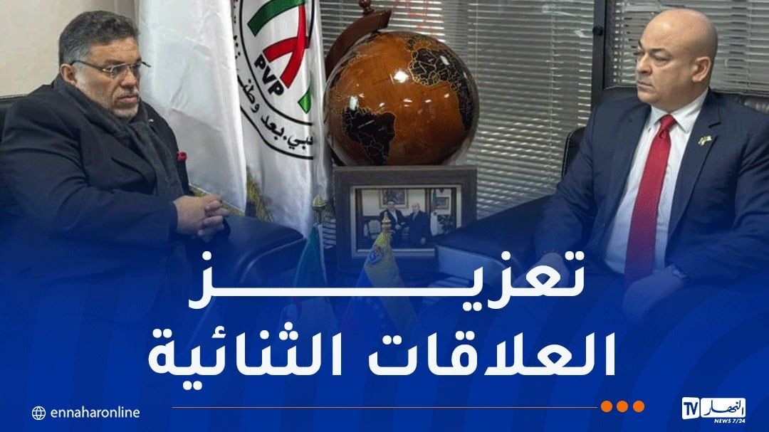 وشكّل اللقاء مناسبة لبحث أبرز مستجدات القضايا الدولية والإقليمية، إلى جانب مناقشة سبل تعزيز العلاقات الثنائية بين الجزائر وفنزويلا، خاصة في جانبيها السياسي والاقتصادي، بما ينسجم مع مواقف الدولة الجزائرية الداعمة للقضايا العادلة ونصرة الشعوب المستضعفة.
