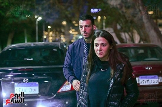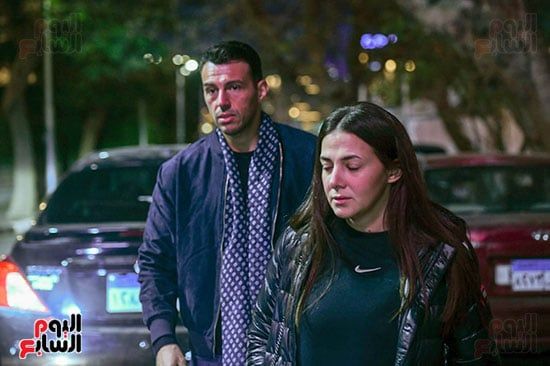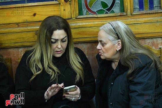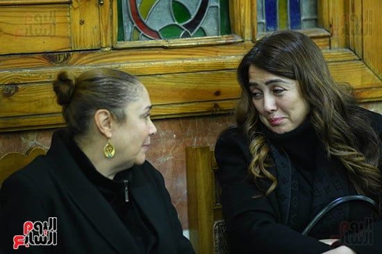 دنيا سمير غانم وزوجها الاعلامي رامي رضوان في العزاء