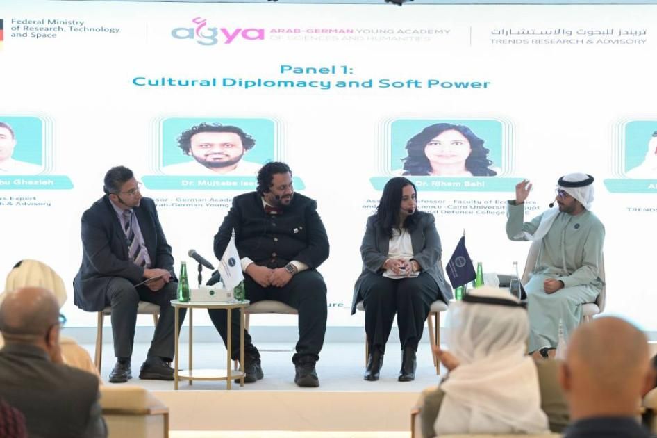 بدوره، أكد الدكتور مجتبى علي إيساني، أستاذ في الهيئة الألمانية للتبادل الأكاديمي، والأكاديمية العربية الألمانية للشباب في العلوم والإنسانيات، في كلمته الافتتاحية، أن أنشطة الأكاديمية العربية الألمانية للشباب تُشكل في حد ذاتها شكلاً من أشكال الدبلوماسية العلمية والقوة الناعمة، ما يُعزز العلاقات بين ألمانيا ودول العالم العربي، بما فيها دولة الإمارات العربية المتحدة، مبيناً أن القوة الناعمة الفعالة تعتمد على التواصل المستدام بين الشعوب، وأن التبادل الأكاديمي يُعد منصة أساسية لبناء علاقات متينة، مشدداً على أهمية التعاون المستقبلي بين الأكاديمية العربية الألمانية للشباب ومركز تريندز للبحوث والاستشارات وكلية الدفاع الوطني لتطوير روابط طويلة الأمد بين الدول.