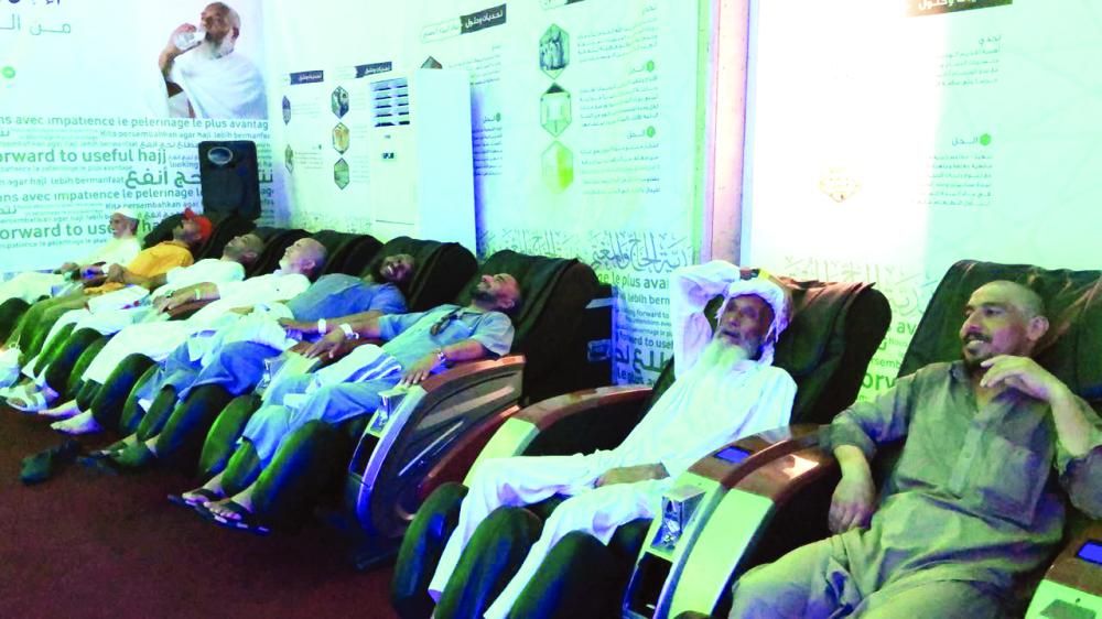 خصصت «جمعية هدية الحاج والمعتمر» 4 مواقع في منى ومزدلفة وعرفة لتقديم خدمة المساج للحجاج فضلا عن كبسولات فندقية تحتوي على غرفة متكاملة الخدمات مصنوعة من الألياف الزجاجية والفايبر جلاس. كما تم تخصيص 33 شاحنة تعنى بتقديم الخدمة المجانية للحجاج. وأبلغ مسؤول المتابعة في الجمعية سعيد البلوشي «عكاظ» أن خدمة كراسي المساج تقدم للحجاج مجانا طيلة فترة الحج، «زارنا يوم العيد في موقع منى فقط قرابة الـ٧٠٠ شخص، تعاملنا معهم بشكل سلس، عن طريق توزيعهم على الكراسي وانتظار الدور».