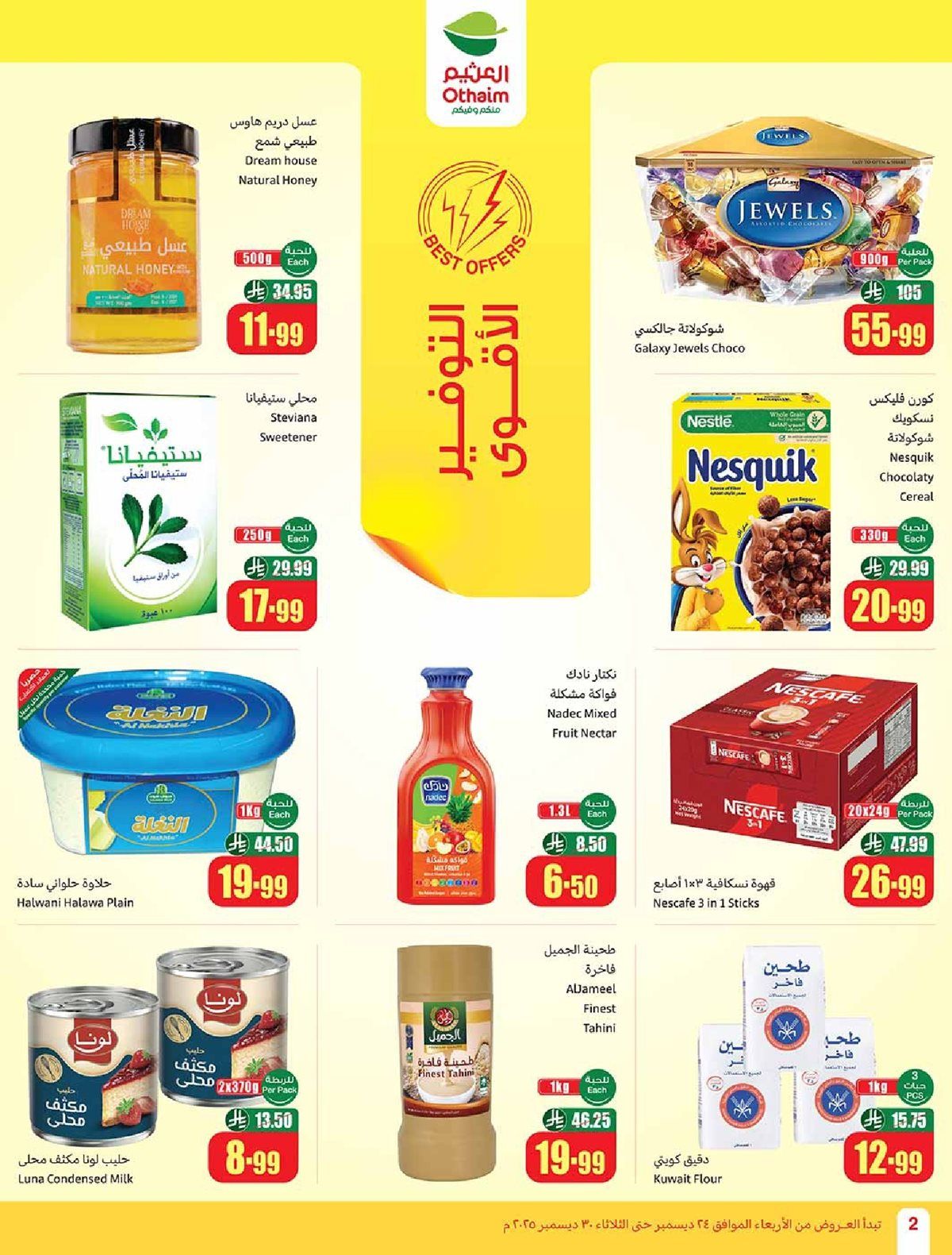 بنقدم ليكم احدث عروض العثيم الأسبوعية الأربعاء 24 ديسمبر 2025 و تحتوي علي تشكيلة من الاجهزة منها قدر طهي وسخان ماء ومروحة مطبخ وصينية فرن و شاشات التلفزيون بتوفر كمان منتجات غذائية منها السبانخ والبصل الأبيض والليمون البلدي والتفاح والتمر وزيت الزيتون البكر والطحينة والعسل الطبيعي باسعار مميزة في موسم العثيم