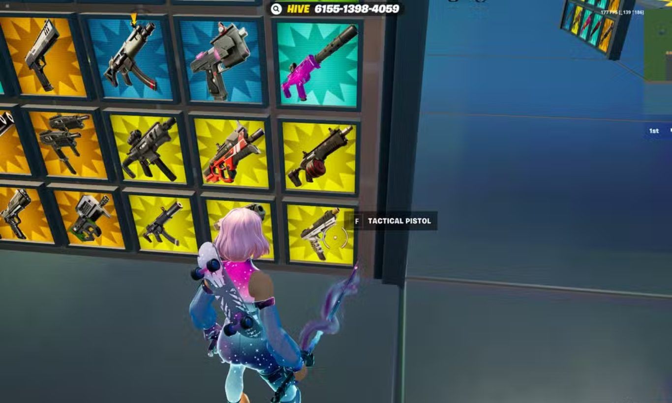 للحصول على سلاح Banana Gun داخل وضع 1v1 with Every Gun يجب في البداية التوجه إلى آلة البيع الخاصة بسلاح Tactical Pistol والحصول عليه قبل تنفيذ أي خطوة أخرى. امتلاك هذا السلاح يعتبر شرطا أساسيا لبدء المسار السري ولا يمكن تفعيل الطريقة بدونه داخل Fortnite.
