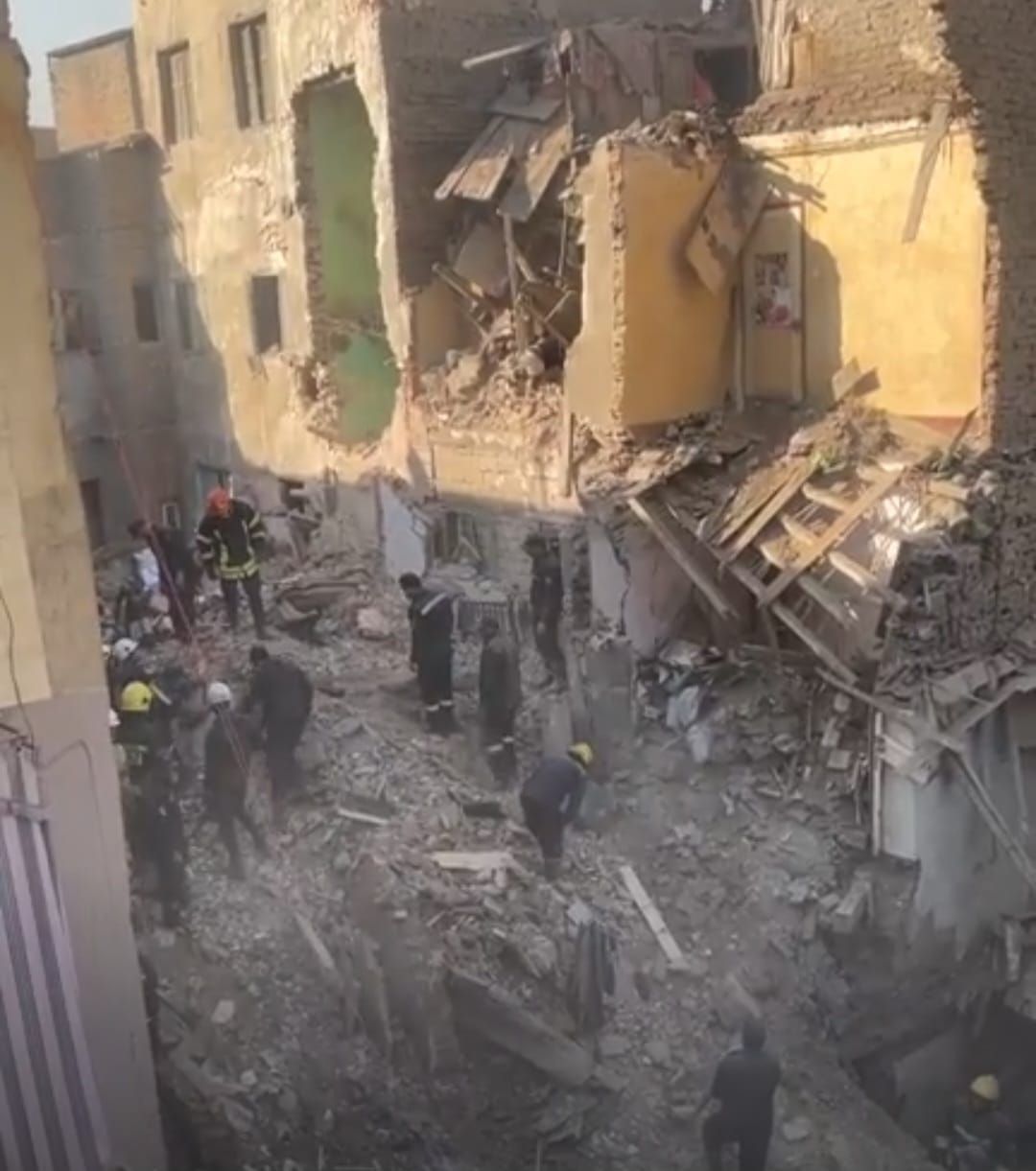 وكان عقار سكني مكون من 4 طوابق انهار بمنطقة إمبابة وانتقل رجال الحماية المدنية إلى مكان البلاغ.