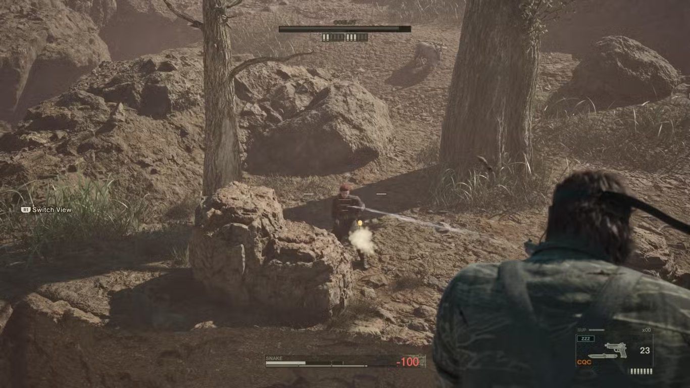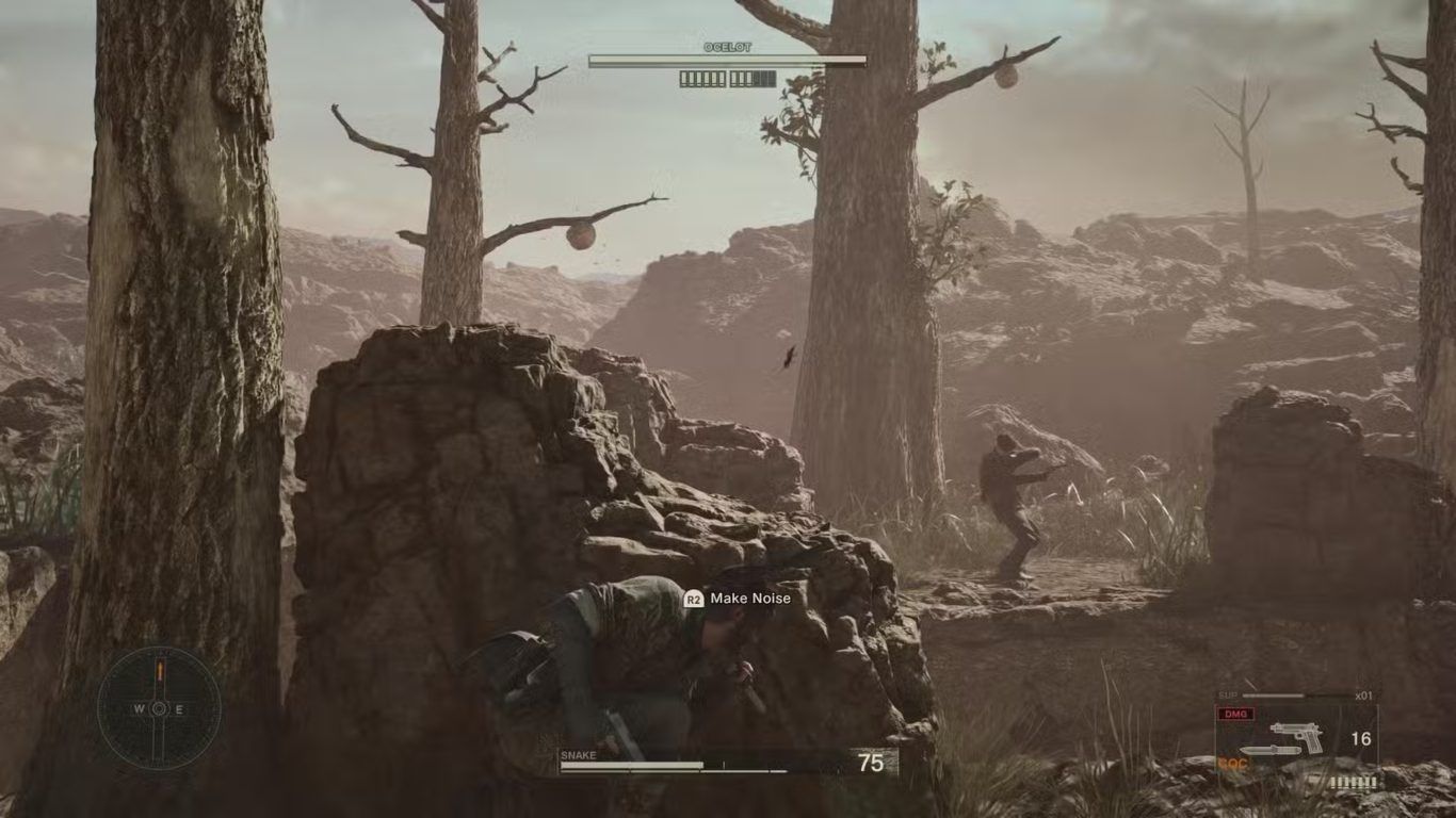 توجد أيضًا خلايا نحل معلقة على أغصان الأشجار يمكنك إطلاق النار عليها لصعق Ocelot وقد يحاول الرد باستخدام خلية نحل خاصة به لذلك استخدم Bug Juice لتفادي الدبابير. إذا احتجت إلى أدوات علاج أو ذخيرة يمكنك الزحف في جانبك من ساحة القتال للعثور على موارد إضافية كما يمكنك تسلق الشجرة الموجودة على يمينك للوصول إلى نقطة مرتفعة إذا لم تتمكن من إطلاق النار بطريقة أخرى.