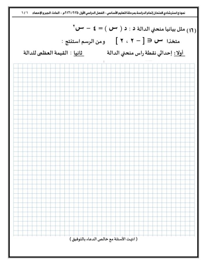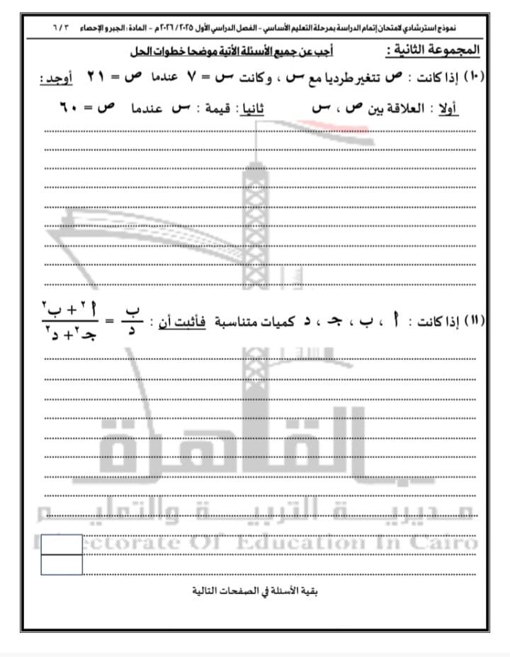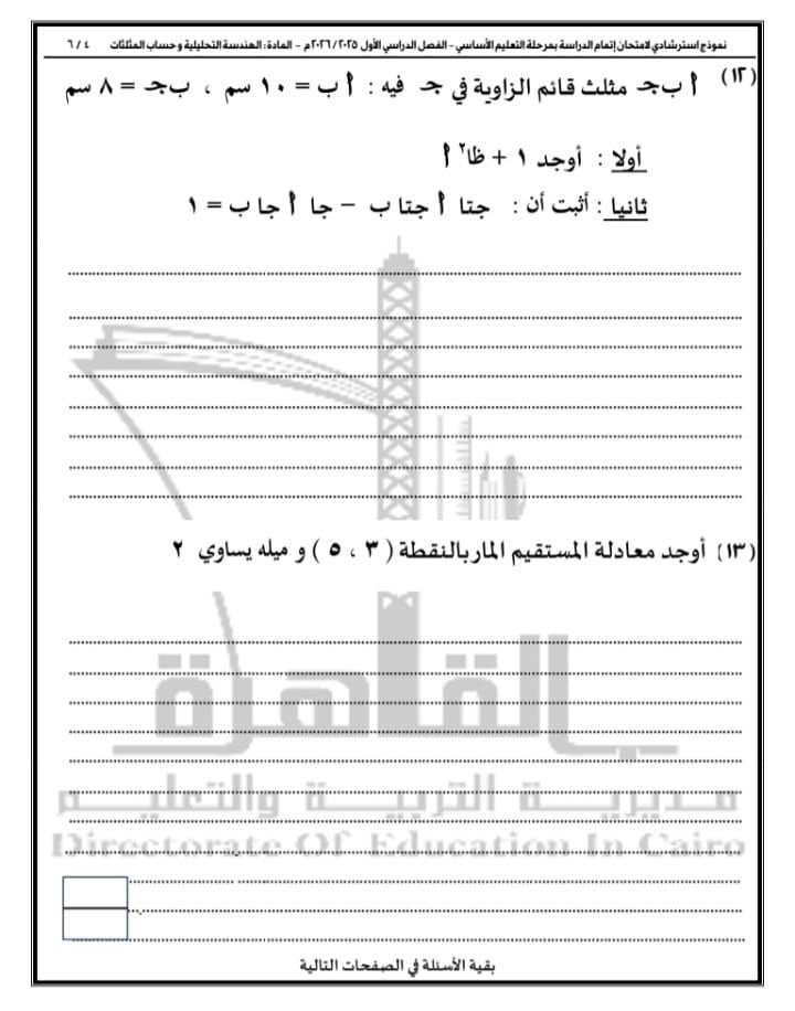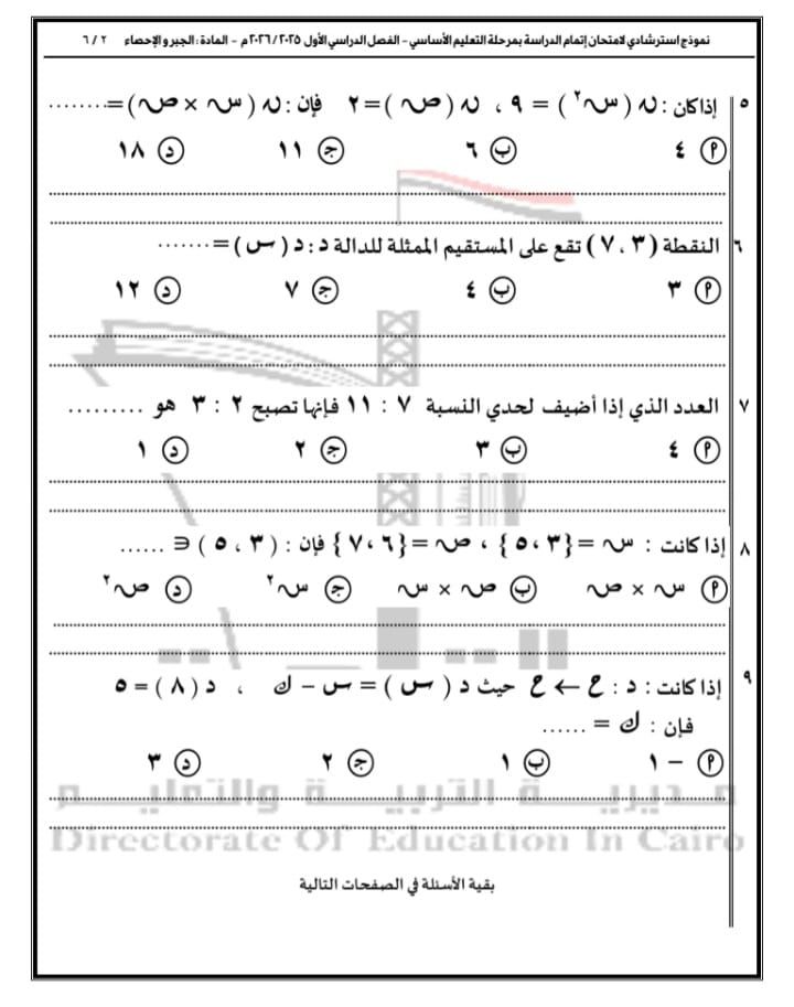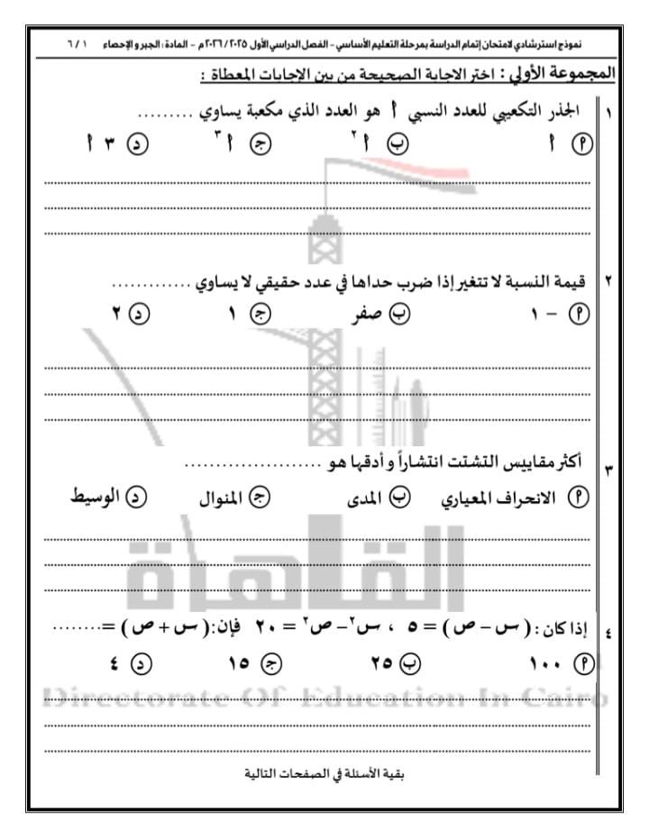 الأربعاء، 24 ديسمبر 2025 02:34 مواصلت مديرية التربية والتعليم بالقاهرة نشر نماذج أسئلة البوكليت في مادة الرياضيات بفرعيها (الجبر والاحتمال – الهندسة المستوية) لطلاب الشهادة الإعدادية للفصل الدراسي الأول للعام الدراسي 2025 / 2026، وذلك في إطار حرصها على دعم العملية التعليمية وتهيئة الطلاب للامتحانات.
