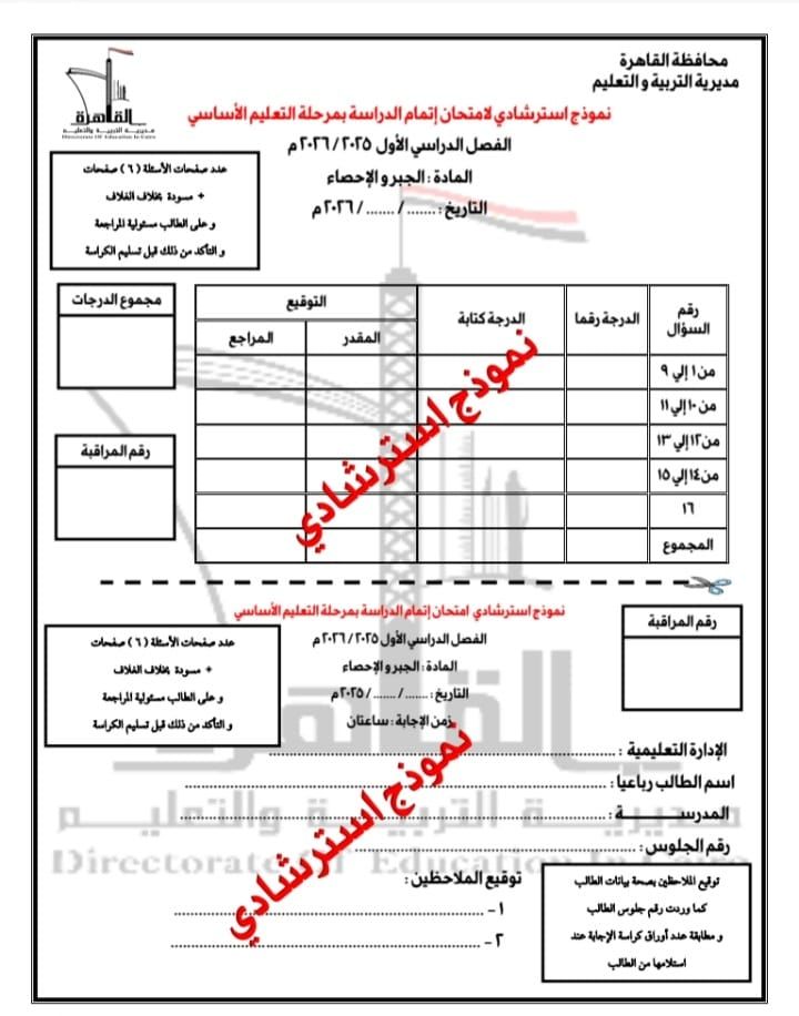 تنفيذًا لتوجيهات وزارة التربية والتعليميأتي ذلك تنفيذًا لتوجيهات محمد عبد اللطيف وزير التربية والتعليم والتعليم الفني، وفي إطار خطة الوزارة لرفع مستوى تحصيل الطلاب وتدريبهم على أنماط الأسئلة المختلفة، ويتم النشر برعاية الدكتورة همت أبو كيلة مدير مديرية التربية والتعليم بالقاهرة، وبمتابعة الأستاذ أحمد شعبان وكيل المديرية، وتحت إشراف الأستاذ إيهاب فتحي موجه عام الرياضيات.