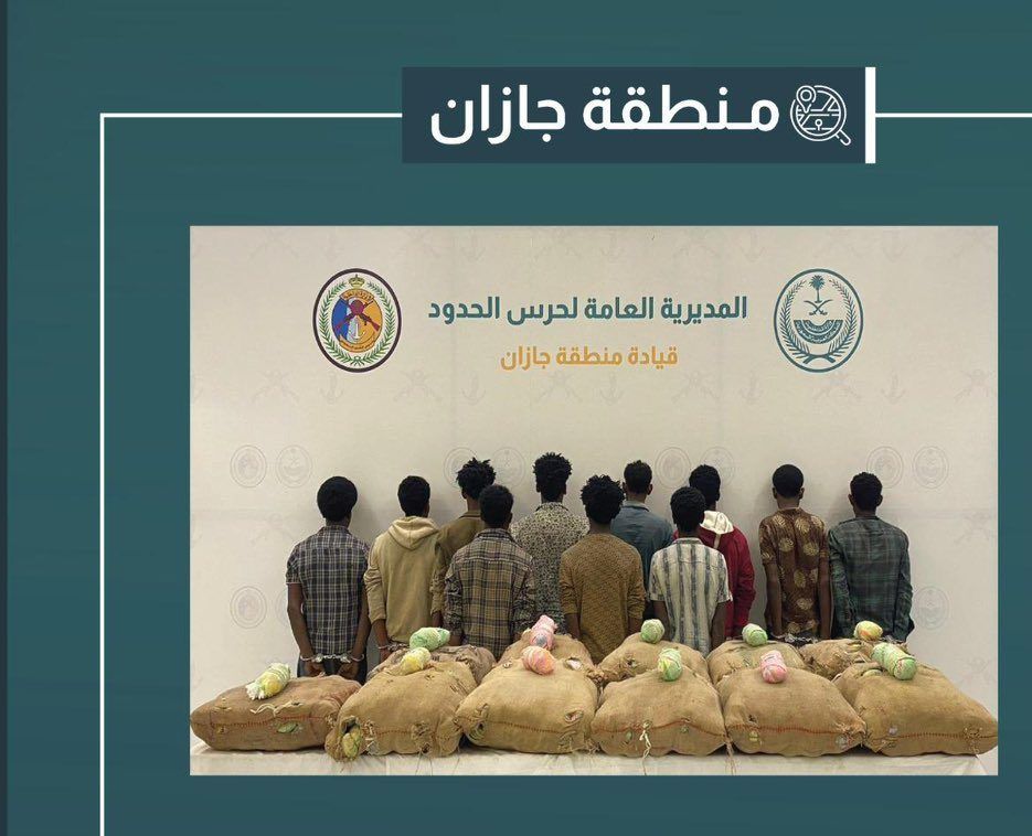 قبضت الدوريات البرية لحرس الحدود في قطاع الدائر بمنطقة جازان على 11 مخالفًا لنظام أمن الحدود من الجنسية الإثيوبية، لتهريبهم 220 كيلوجرامًا من نبات القات المخدر.