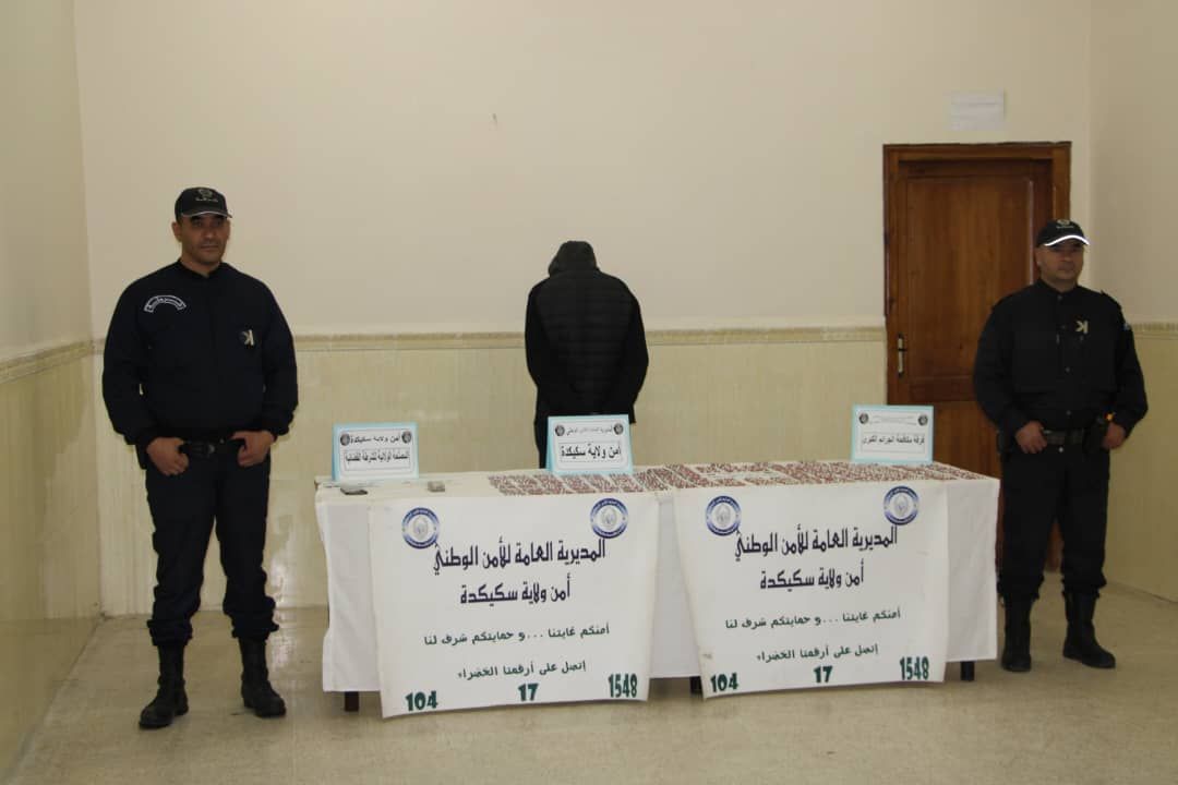 تمكنت مصالح أمن ولاية سكيكدة ممثلة في المصلحة الولائية للشرطة القضائية (فرقة مكافحة الجرائم الكبرى)، من توقيف شخص مسبوق قضائيا في عقده الرابع من العمر عن ” قضية حيازة المخدرات و المؤثرات العقلية بطريقة غير مشروعة لغرض البيع “.