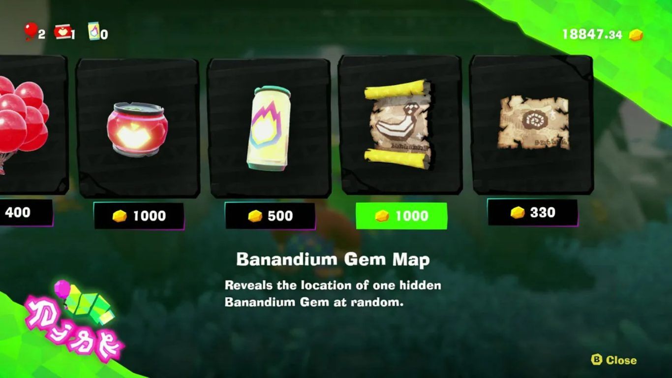 يمكن للاعب أيضا الاعتماد على خرائط الكنوز التي تباع في متاجر Stuff Shop المنتشرة في مختلف الطبقات. تتيح خرائط Banandium Gem تحديد موقع موزة واحدة داخل الطبقة التي تم شراء الخريطة منها ويتم بعدها وضع علامة واضحة على الخريطة الرئيسية. تبدأ أسعار هذه الخرائط من ألف قطعة ذهبية إلا أن التكلفة ترتفع بمقدار مئة ذهب مع كل خريطة يتم شراؤها مما يجعل هذه الطريقة فعالة لكنها مكلفة على المدى الطويل وتتطلب إدارة جيدة للموارد.