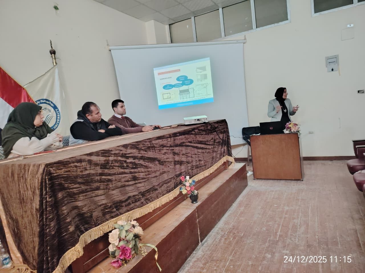 الخميس، 25 ديسمبر 2025 12:53 صقدمت دكتورة خديجة شقرة المدرس بكلية التكنولوجيا والتعليم- جامعة بني سويف ورشة عمل توعوية بعنوان: العمارة الحديثة وتوظيفها لتحقيق التهوية والإنارة الطبيعية للمباني وتقليل استهلاك الطاقة، في إطار دعم جهود الدولة لتحقيق أهداف التنمية المستدامة، وتنفيذًا للهدف الحادي عشر المعني بـ«جعل المدن والمستوطنات البشرية شاملة وآمنة وقادرة على الصمود ومستدامة»، والوعي المجتمعي بقضايا الاستدامة البيئية ودور العمارة في تحسين جودة الحياة.